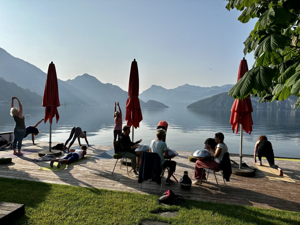 16:00 Uhr bis 17:30 Uhr Gruppe A Yoga, Gruppe B Handpan                                                                       18:30 Uhr Nachtessen