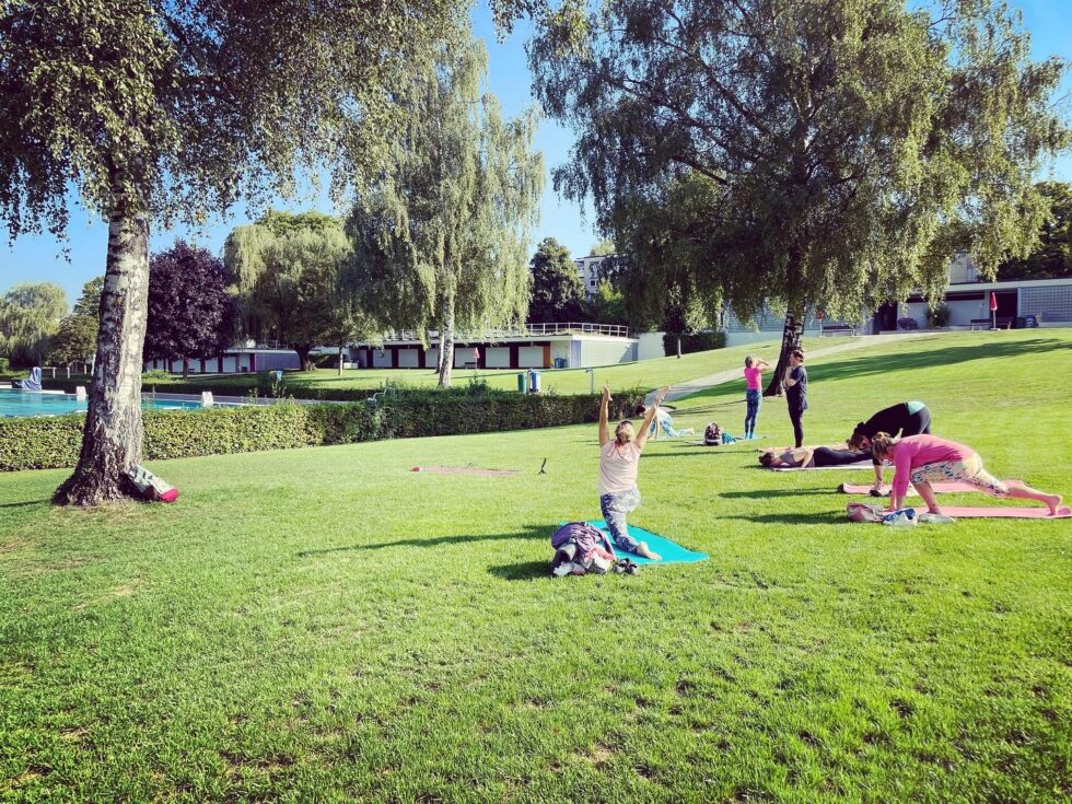 Im Sommer und bei trockenem Wetter, wechselt die Freitagsstunde vom Lila in die Badi Urdorf. Es gibt nichts Schöneres als das Gras unter den Füssen, Sonne und Wind auf der Haut zu spüren und zum Konzert der Vögel Yoga zu machen.